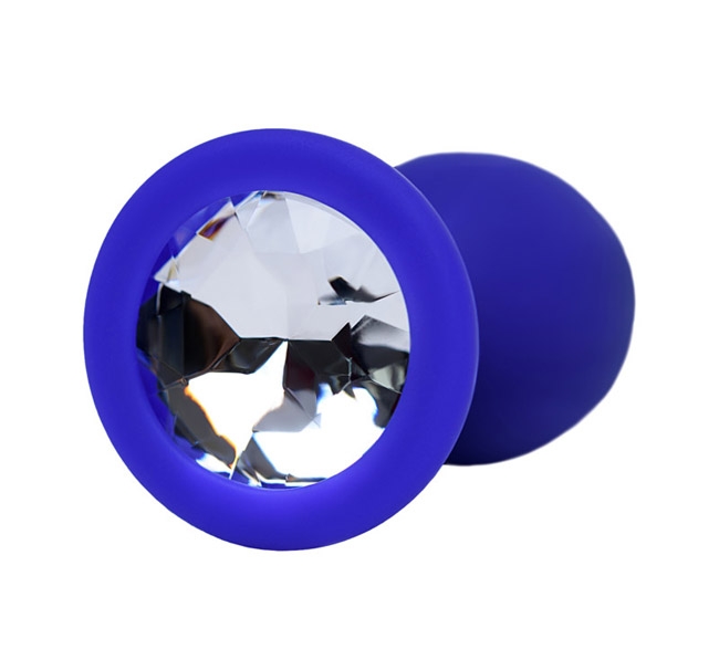 Как купить - Пробка анальная синяя с прозрачным кристаллом (длина — 7,0 см, диаметр — 2,8 см)