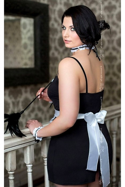 Костюм горничной Molly состоит из 4-х предметов: платье, передничек, манжеты на запястья и украшение на шею.