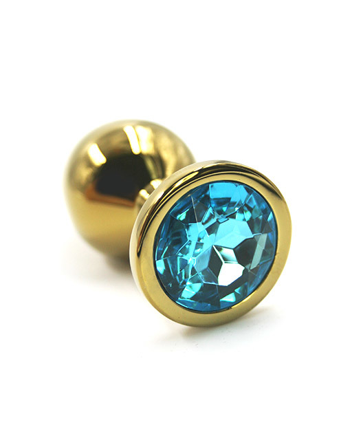 Как купить - Пробка анальная металлическая золотистая с голубым кристаллом (длина — 7,0 см, диаметр — 2,6 см)
