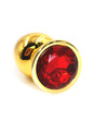 Пробка анальная металлическая золотистая с красным кристаллом (длина — 7,0 см, диаметр — 2,6 см)