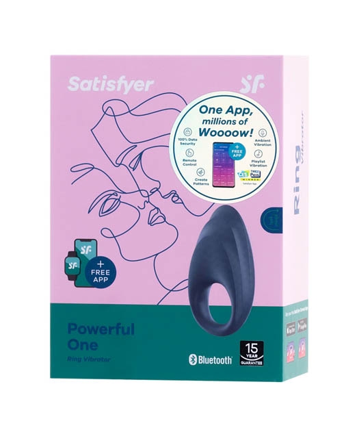 Эрекционное кольцо Satisfyer Powerful синее — 10 режимов вибрации
