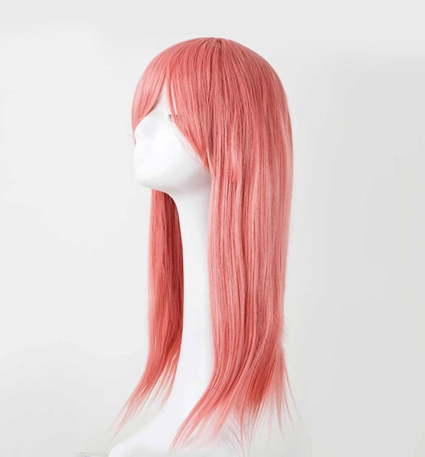 Парик бледно-розовый с длинными прямыми волосами и челкой