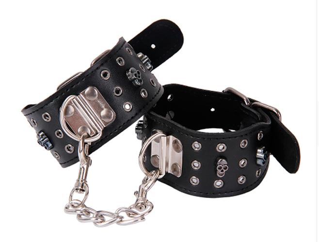 Узкие наручники выполнены из кожи чёрного цвета декорированные металлическими заклепками. Размер наручников регулируется при помощи застёжки-пряжки. С такой игрушкой можно сексуально раскрепоститься и воплотить в реальность бурные фантазии. Мягкая подкладка обеспечивает комфорт и удобство использования.