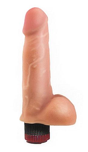 Вибратор телесного цвета выполнен в виде полового члена с выраженной головкой и мошонкой. Необычайно приятный материал, рельефный, передающий эффект мягкой текстуры кожи, не имеет швов. Виброэлемент расположен по всей длине изделия. Скорость вибрации регулируется при помощи колесика у основания. Работает от двух элементов питания типа АА. Рекомендуется использовать со смазками на водной основе.